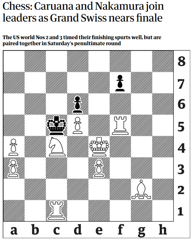 #GrandSwiss #Caruana #NakamuraZOË KNov 5, 20231 min readRated NaN out of 5 stars.https://www.theguardian.com/sport/2023/nov/03/chess-fabiano-caruana-joins-leaders-as-the-grand-swiss-reaches-final-rounds